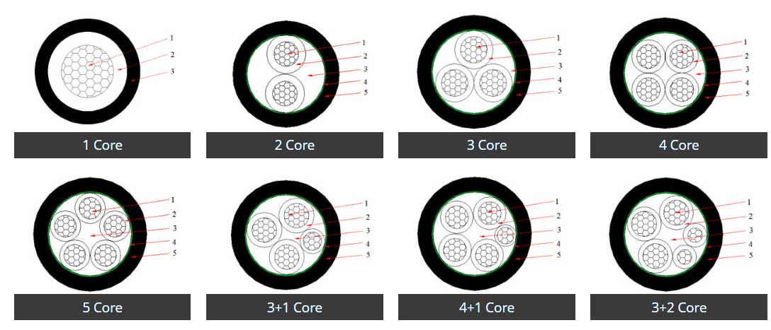 0.6/1kV-3+2 Core Aluminum Conductor PVC Insulated PVC Sheathed Power Cable