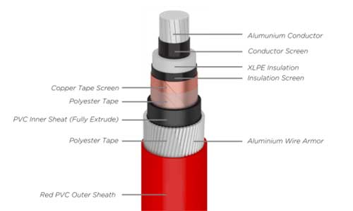 | NA2XSRY (Al/XLPE/CTS/AWA/PVC) (Aluminium Conductor, XLPE Insulated, Copper Tape Screen, PVC Sheathed, AlumuniumWire Armor, PVC Sheathed) |